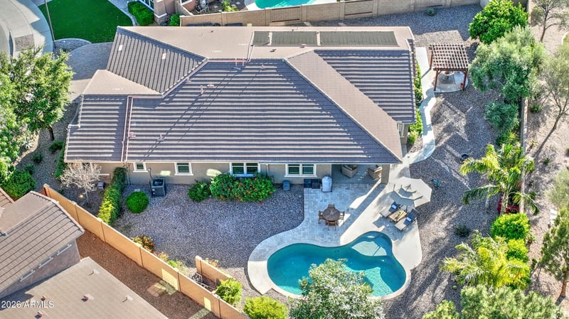 Okay, let's discuss the yard...No other words other than "Incredible" can properly describe it! Nestled against an extremely private green belt, this oversized yard presents enough area for extra vehicles/toys, its own private garden, and entertainment at its large private pool with water feature and separate solar-panel heating, extended covered patio, and green areas, complete with fire pit, Ramada, and mature landscaping throughout!