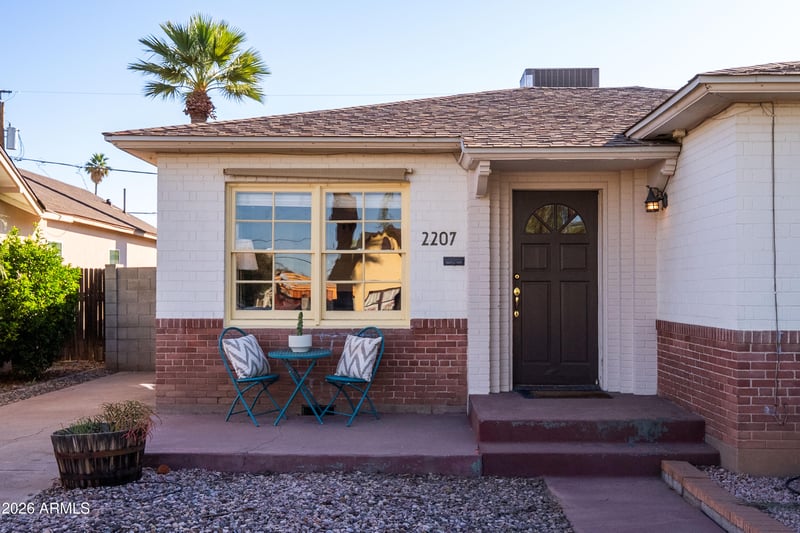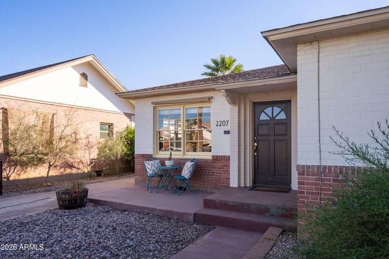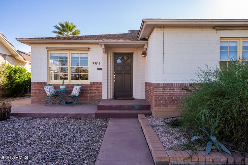 Listing details for 2207 Edgemere St, Phoenix, AZ 85006 : This charming historic home at 2207 N Edgemere Street sits in the heart of Coronado's historic district on one of the neighborhood's most desirable blocks, offering the distinctive advantage to apply (if owner occupant) for historic tax designation (see disclosures). Edgemere Street is a non-through road that naturally limits traffic flow due to thoughtful street layout, and the palm-lined, idyllic street design creates a peaceful, picturesque setting. The location places residents within easy walking distance of Sunshine Market, Dark Hall Coffee, the Coronado Vegan Restaurant, Oak Street Bike Path, Coronado Park, and the Oak Street Mural Alley, making daily life convenient and enjoyable. The residence showcases exceptional natural light throughout and preserves numerous original historic features and architectural details that give it authentic character. Original oak plank hardware and flooring run t/o the interior, complemented by thoughtful updates including newer ceiling fans, an antique glass dining room lamp, and professionally sprayed attic insulation that enhances energy efficiency. The home received a new heat pump gas pack in 2023 and a modern four-burner gas stove in 2024, blending historic charm with contemporary convenience. The kitchen features floor-to-ceiling cabinetry in excellent condition, maintaining its original historic integrity while providing ample storage. The home's plumbing includes partially replaced ABS sewer lines for improved functionality. Outside, the covered detached patio creates an ideal entertainment space equipped with a working ceiling fan and a hard-piped built-in gas grill perfect for outdoor gatherings. Inside, practical amenities include a gas water heater and a washer and dryer that convey with the property, along with a fold-out ironing board built into the kitchen wall, a delightful original historic detail. The bathroom features vintage pink and blue tile in the tub and shower area, a charming period touch that adds personality to the space. Generous storage abounds throughout, with a large hallway closet and substantial bath linen closets featuring built-in drawers. The home's original three-paneled hardware doors and hardwood doors appear throughout, maintaining architectural consistency. The floor plan includes two spacious bedrooms, with the front bedroom offering two closets and the rear bedroom providing one, both rooms notably large for a historic bedroom. The single bathroom is also generously sized for a home of this era, and the overall living space exceeds 1,000 square feet. The roof was installed in the mid-2000s, and remains in good condition. A historic phone nook in the hallway serves as a charming reminder of the home's era, while the thoughtful floor plan ensures excellent flow between rooms. The exterior landscaping embraces desert-adapted, low-water native plantings served by an irrigation system, offering both beauty and sustainability. Modern updates throughout include new ceiling fans and stainless steel appliances in the kitchen, with both the refrigerator and stove featuring contemporary stainless finishes. The refrigerator, washer, and dryer all convey with the sale, adding exceptional value. This property represents an affordable well located opportunity for this desirable market area. Coronado stands out as a genuinely friendly, walkable neighborhood where residents know their neighbors and enjoy a strong sense of community. The area hosts numerous events throughout the year, including the beloved historic home tour scheduled for the last Sunday in February, offering residents and visitors alike the opportunity to appreciate the neighborhood's architectural heritage and vibrant community spirit. Finding this gem of a historic ranch home located on this special site within Coronado with meaningful upgrades and updates for an affordable price doesn't happen often. Don't miss it!
