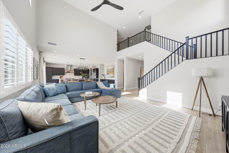 Listing details for 2209 Fallen Leaf Ln, Phoenix, AZ 85024 : Built in 2022, this beautifully designed 4-bedroom + office, 4.5-bath home offers modern luxury and thoughtful design throughout. The open-concept floor plan centers around a chef's kitchen with premium appliances, a striking waterfall island, and walk-in pantry, flowing seamlessly into the main living spaces. Large windows fill the home with natural light while framing mountain views. The backyard is designed for Arizona living with a heated saltwater pool and spa, Baja shelf, and spacious stamped concrete patio ideal for relaxing or entertaining. High-end finishes and numerous upgrades throughout complete this exceptional, move-in-ready home.
