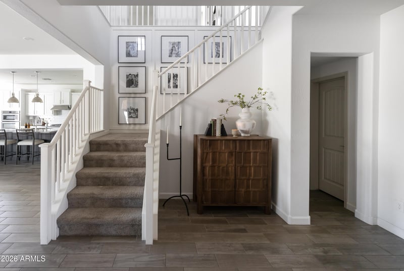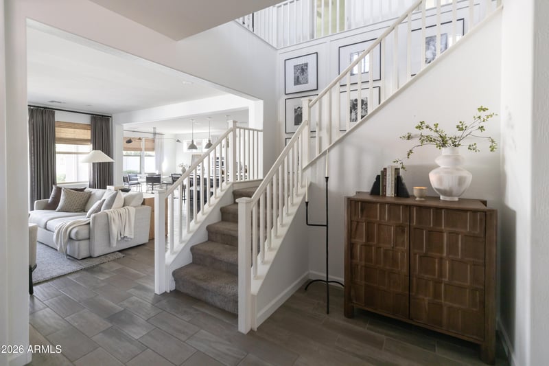 Listing details for 22114 Domingo Rd, Queen Creek, AZ 85142 : A True Must-See! This stunning home shows like a model and was thoughtfully designed by a professional interior designer, offering elevated style and effortless comfort throughout. Ideally located near the heart of Queen Creek, you'll enjoy convenient access to shopping, dining, and everyday amenities while still savoring the charm of this highly sought-after community. The home features 4 spacious bedrooms and 3.5 bathrooms, including a private first-floor ensuite. Upstairs, you'll find the luxurious primary suite along with a conveniently located laundry room for added ease. A generous loft provides flexible living space, , while a dedicated study space on the 1st floor makes working from home both comfortable and functional.