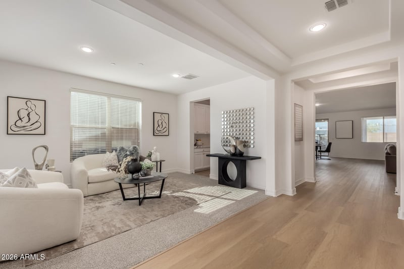 Listing details for 22172 94th Ln, Peoria, AZ 85383 : Look no further! This Gorgeous UPDATED 6 bed, 5 bath home in The Meadows community is the one for you! Lowest price per sqft. in the community! This home features great curb appeal, low-maintenance landscaping and 3 car tandem garage. Inside you will find sizeable dining & living areas, perfect for entertaining. NEW Quartz counters, NEW Tile Backsplash, NEW LVP Flooring, NEW Carpet, NEW Interior paint, NEW ceiling fans, NEW stainless steel kitchen refrigerator, NEW faucets, NEW cabinet hardware and refinished kitchen cabinets! Newer Trane AC Unit in 2023! The kitchen comes equipped with plenty of cabinet space, a walk-in & butler pantry, quartz counters, tile backsplash, stainless steel appliances, double wall ovens and an island! This home has 2 master suites, one downstairs and one upstairs! The possibilities are endless with the amount of space this home has to offer. Continue upstairs and into the oversized master suite, showcasing a sitting area, a private bath with dual sinks and a walk-in closet. Don't forget about the large loft upstairs as well as 4 additional bedrooms. Step outside in the backyard and you will find a massive full length covered patio, pergola, artificial turf, pavers and RV gate! This home is a true gem! Meadows community offers amazing amenities which include community pool & spa, pickle ball courts, playgrounds and biking/walking trails! Located in north Peoria's hottest zip code within close proximity to restaurants, shopping, Paloma Community Park, Lake Pleasant and top ranked public, private and charter schools make this home an AMAZING OPPORTUNITY! Act now before it's gone!