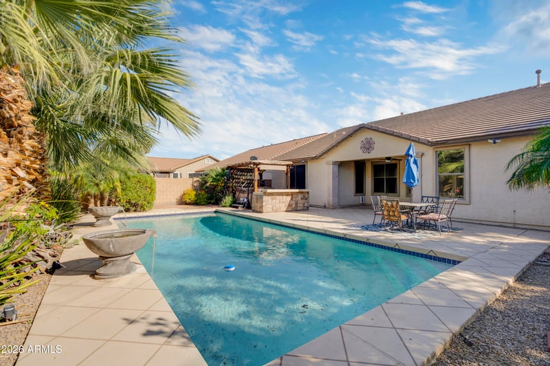 Listing details for 2218 Magdalena Ln, Phoenix, AZ 85041 : Incredible value in a gated community near South Mountain! This well maintained 4 bed, 2 bath home offers an open and functional floor plan with travertine flooring, spacious living areas and an upgraded kitchen featuring granite countertops, stainless steel appliances, custom backsplash and a large island overlooking the family room. The split floor plan provides privacy with a generous primary suite including a walk in closet and travertine walk in shower. Step outside to a true backyard retreat with a sparkling PebbleTec pool, spa and lush landscaping perfect for relaxing or entertaining. Conveniently located near South Mountain trails, shopping, dining and easy access to I-10 and Loop 202. Rare opportunity for a pool home in a gated community.