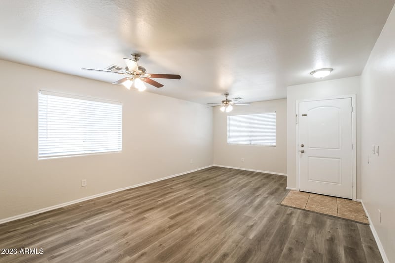 Listing details for 2219 101st Dr, Tolleson, AZ 85353 : 3-bedroom, 2-bath home situated on a desirable corner lot in Tolleson. Features low-maintenance flooring throughout with no carpet. The open-concept floor plan offers a spacious kitchen overlooking the living room, ideal for both everyday living and entertaining. The kitchen includes stainless steel appliances, ample cabinet space, and a functional layout. Split floor plan provides added privacy, with a well-sized primary suite and en-suite bath. Backyard includes additional storage space, perfect for tools or extra belongings. Conveniently located near shopping, dining, parks, and easy access to I-10 for commuting to downtown Phoenix and surrounding areas. Move-in ready with a practical, comfortable layout.