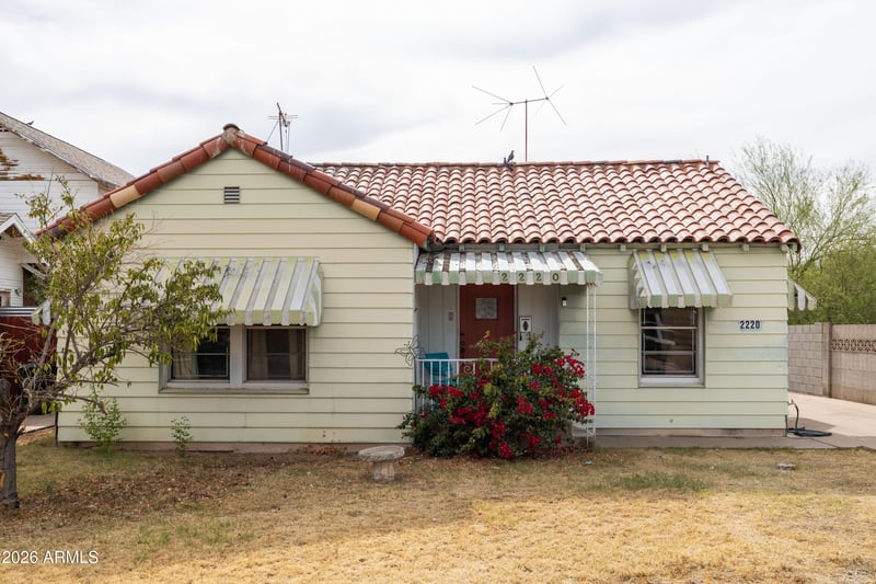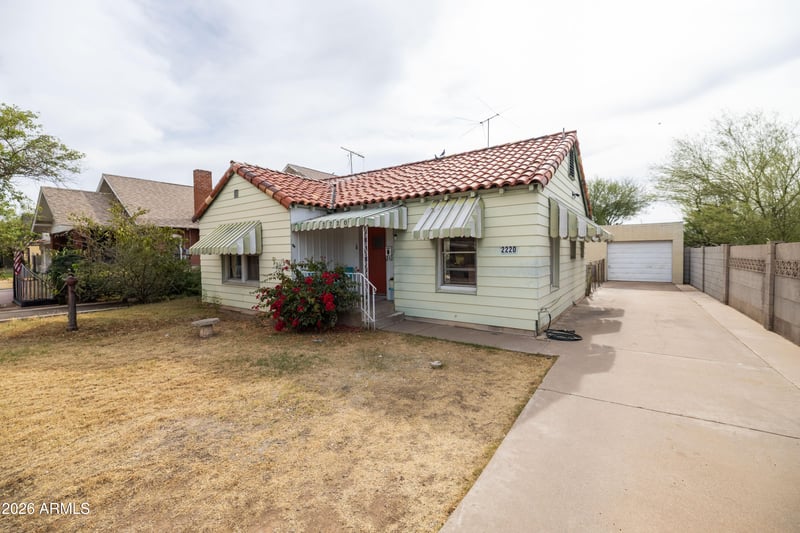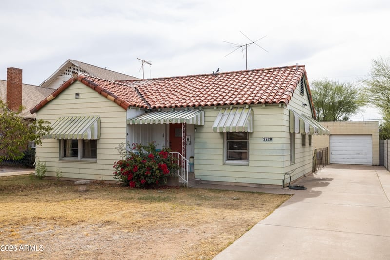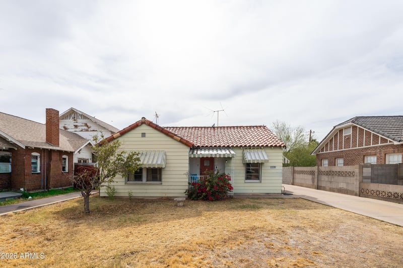 Listing details for 2220 Edgemere St, Phoenix, AZ 85006 : Rarely does an opportunity arise that combines historic charm, long-term investment value, and one of Phoenix's most coveted addresses. Welcome to 2220 N. Edgemere Street, a distinguished 1931 brick residence in the heart of the Coronado Historic District, where historic tax incentives, architectural integrity, and an unbeatable location converge to make this one of the most compelling investments on the market today. Situated on a nearly 6,000 square foot lot on one of Coronado's most desirable blocks, this home enjoys a quiet, low-traffic street that connects minimally to surrounding thoroughfares, creating a peaceful and exceptionally safe environment. A charming front conversation stoop welcomes you home and sets the tone for the warmth within. Walk out the front door and you are steps from beloved local coffee shops, acclaimed restaurants, and the iconic Sunshine Market, placing you in the heart of one of Phoenix's most walkable urban neighborhoods. The home's red brick construction remains protected beneath aluminum siding installed in the 1960s, accompanied by functional period awnings over the windows that keep the home naturally shaded and cool. For the visionary investor, that siding represents genuine upside, as the original brick underneath is very likely in excellent condition and ready to be revealed. The classic clay tile roof crowns the property with timeless character and lasting durability. Step inside and the elegance of a bygone era unfolds immediately. Soaring coved ceilings, original plaster walls, and original oak hardwood floors create an atmosphere of warmth and craftsmanship rarely found today. The living room is anchored by a stunning picture window that floods the space with natural light and a wood-burning fireplace that adds undeniable charm. A beautifully shaped historic arch frames the passage from the living room into the formal dining room, an architectural detail that is distinctly of its period and simply irreplaceable. Historic built-ins in the dining room and hallway, original paneled hardwood doors with period hardware, and a delightful in-wall kitchen ironing board round out a home that has held onto its soul. Infrastructure updates completed in the 1980s, including work on the kitchen, bathrooms, and a partial ABS sewer line update, have laid the groundwork so that this house is truly ready for its next chapter. The HVAC has been well maintained and recently serviced with a technician-assessed remaining life of at least two to five years, and the water heater is newer. The large detached garage presents a ready-made opportunity to construct an Accessory Dwelling Unit, which would command strong rental income in one of Phoenix's most in-demand neighborhoods and significantly enhance the property's income-generating potential. Combined with Coronado's historic tax benefits, 2220 N Edgemere is not just a beautiful home. It is a rare and intelligent investment in one of Phoenix's most vibrant communities!