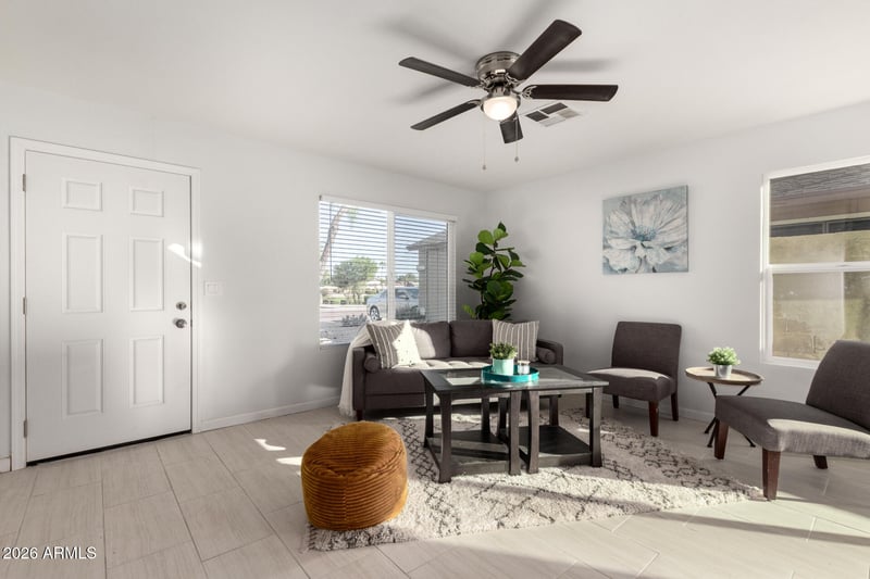 Listing details for 22202 32nd Ave, Phoenix, AZ 85027 : **Freshly updated North Phoenix gem!** This charming 3-bedroom, 2-bath home offers unbeatable convenience with quick access to I-17, Loop 101, top shopping, dining, and entertainment. Inside, you'll love the **brand-new tile flooring throughout**, a **fully remodeled kitchen** featuring new cabinets, countertops, stainless steel appliances, and a stylish single-basin sink. Home also boasts **new windows, new roof, and fresh interior & exterior paint** for peace of mind. Both bathrooms include **new modern vanities**, and a new garage door and opener completes this move-in ready home. A perfect blend of comfort and location—don't miss it!