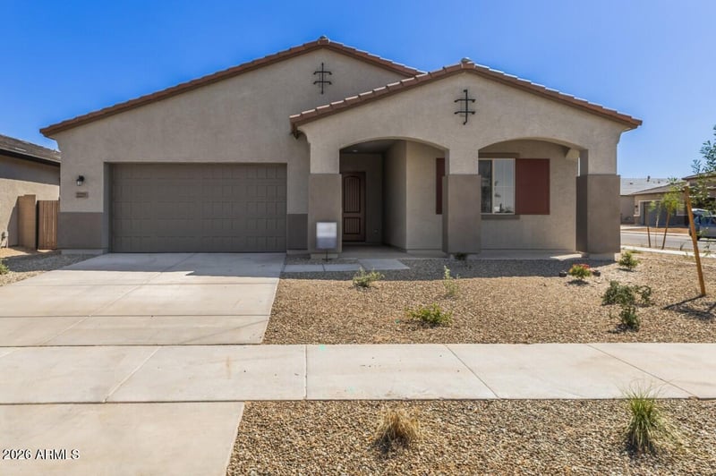 Listing details for 22231 Tonopah Dr, Surprise, AZ 85387 : Welcome to this stunning new Estates Series home featuring our sought-after Elite Style Design Package with wide plank tile flooring in main living area and 42'' upper cabinets, on a desirable corner lot! This thoughtfully designed home features four beds, three full baths, and one-half bath, upgraded GE gas appliances, 10ft ceilings, 8ft interior doors and secondary bedroom with ensuite. Other guest bedrooms offer a convenient Jack-and-Jill bathroom, providing both functionality and privacy--perfect for family living or guests. The cherry on top is the 3-car tandem garage offering ample space for vehicles, storage, or hobbies. Don't miss the opportunity to make it yours!