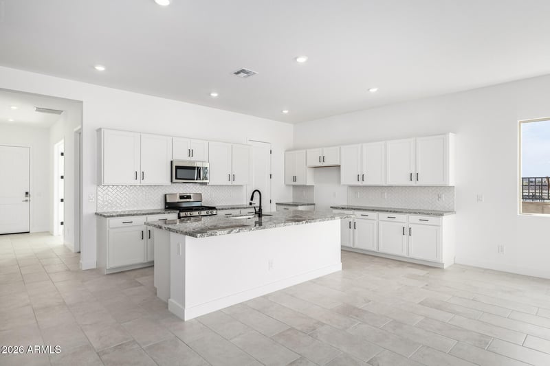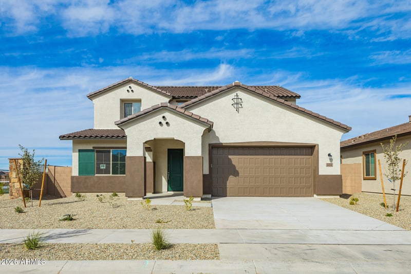 Listing details for 22232 Tonopah Dr, Surprise, AZ 85387 : Amazing home for this price! The Estate Series, jaw-dropping plans, now for sale! Spectacular community! Largest home in Frontera and stunning. It has everything you're looking for and more. Entertainer's kitchen for sure. Beautiful white cabinets, herringbone design backsplash, large island with breakfast bar, huge pantry. We have 10' ceilings, 5'' baseboards, tankless water heater, smart home package, electrical upgrades, double doors at flex room. We added cabinets in the laundry room and at the drop zone. Flex room and ensuite on main level. Spacious bedrooms, perfect sized loft, great closet at primary bedroom too. Stair railing, soft water loop pre-plumb, garage service door and three car tandem garage.