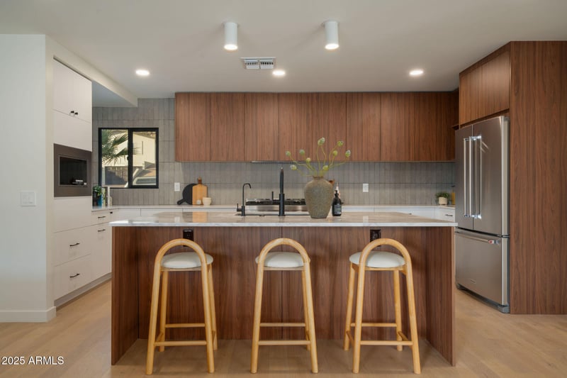 Listing details for 2225 Belmont Ave, Phoenix, AZ 85020 : Welcome to this fully reimagined Mid-Century Modern retreat. The home showcases breathtaking mountain views from nearly every window and downtown city views from the primary suite. Outdoor adventure awaits with trail access just steps from your front door. No detail was overlooked in this extensive renovation. Enjoy all-new interior and exterior electrical and plumbing fixtures, a brand-new roof, pool, fresh stucco, and black-on-black Milgard windows. Additional highlights include an expansive patio, and an elevated observation deck designed to take in the views. Inside, the home is a professionally curated showcase of modern design, featuring engineered hardwood floors, sleek slab-style walnut cabinetry, marble countertops, and designer tile throughout. Move in ready and one of a kind!