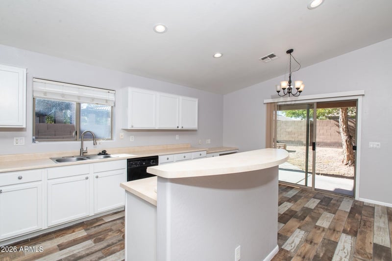 Listing details for 22264 Kingston Dr, Maricopa, AZ 85138 : Welcome to this beautifully maintained 4-bedroom, 2-bath home offering 1,809 sq ft of comfortable living space in a highly desirable Maricopa community. Designed with an open floor plan, this home features tile flooring throughout and a spacious kitchen complete with abundant counter space and bright white cabinetry--perfect for both everyday living and entertaining.