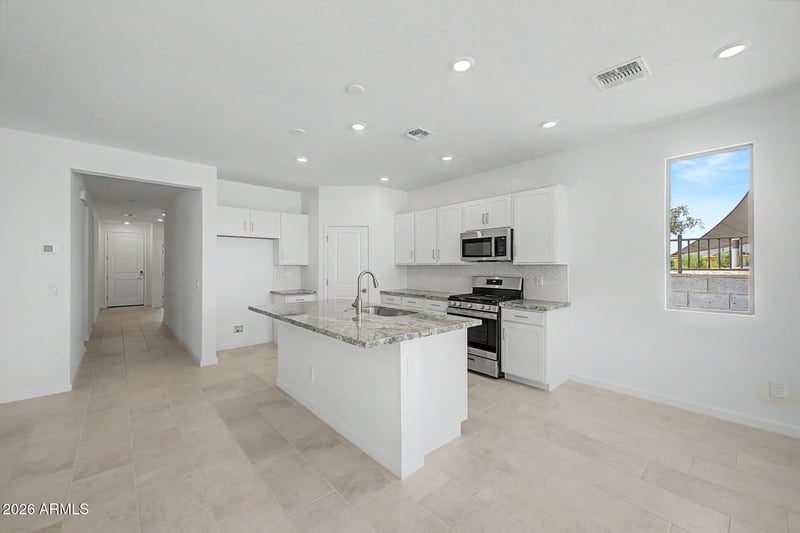 Listing details for 22358 Irma Ln, Surprise, AZ 85387 : Amazing OPPORTUNITY! Home is READY! Energy efficient home in the DESIREABLE Frontera community with so much to offer. Stunning views! Great curb appeal, stone elevation, 8' garage door, soft water loop, big yard, end lot close to a great park! Smart Home package, ceiling fan prewires in all bedrooms and great room too. Spacious kitchen has large island with breakfast bar, single bowl sink and a walk-in pantry. Granite countertops are beautiful, herringbone backsplash, white cabinets, brushed nickel hardware and finishes throughout. Dining area for family dinners. Carpet only in bedrooms/closets, 12''x24'' tile everywhere else! Split floor plan, four bedrooms, 2.5 baths. Beautiful parks, pickleball, bocce ball and more. Great incentives, move-in package too. You will want to come see it!