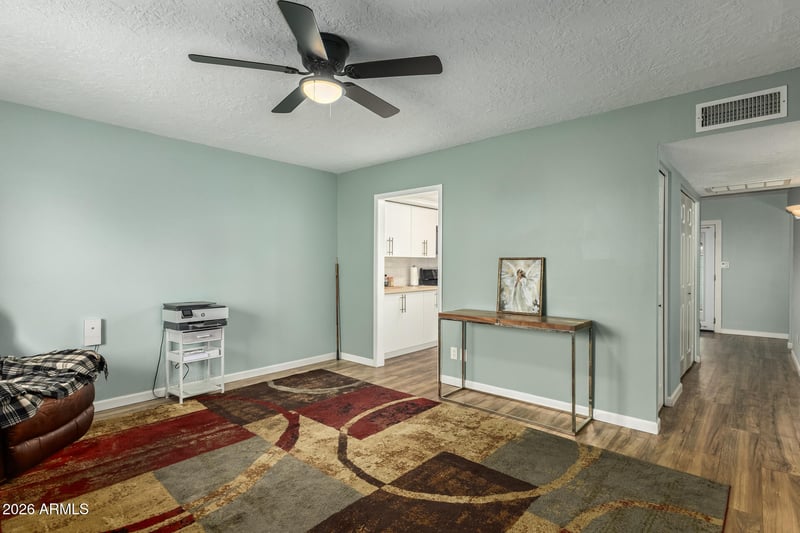 Listing details for 225 Standage -- #20, Mesa, AZ 85201 : Perfectly positioned as an end-unit and all on one level, this charming townhome blends comfort and style in all the right ways. Inside, wood-look flooring, a soothing neutral palette, and an inviting living room create a warm, welcoming atmosphere. The kitchen features stainless steel appliances, white cabinetry, a tile backsplash, and ample counter space for easy everyday living. The main bedroom offers a private bathroom for added comfort and convenience. Enjoy access to a community pool, large grassy areas, and a location close to dining, shopping, and more. Don't miss this fantastic opportunity!