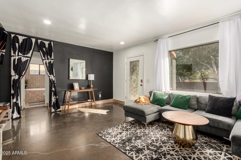 Listing details for 2254 17th Ave, Phoenix, AZ 85007 : Charming historic home just steps from Encanto Golf Course, full of character and warmth. The 2 bed, 1.75 bath main house features stained concrete floors, updated bathrooms, a cozy family room, and a stylish kitchen with Quartz countertops, subway tile backsplash, farmhouse sink, and pantry. Detached 1 bed, 1 bath guest house with private entry offers excellent flexibility and income potential. The inviting yard is perfect for entertaining and includes a unique outdoor shower with sink for a spa-like experience under the sky. Select furniture available on a separate bill of sale. A rare Encanto opportunity you don't want to miss.