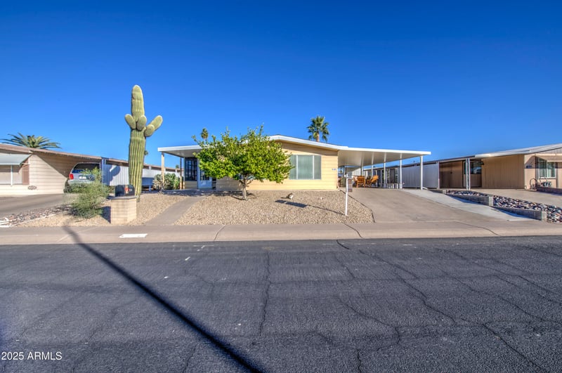 Listing details for 2259 Nicklaus Dr, Mesa, AZ 85215 : New on the market. Larger than normal at 1656 square feet mobile home. The home has two bedrooms and two Bathrooms'. The home has a formal dining room, family room (which has been extended) and a large living room. The home has an island which has places to eat also. There is also a glassed in Arizona room with a patio door from the family room. There is a golf cart garage/work shop. The spacious carport is extra wide. Apache Wells is a 55Plus community with many varied activities for everyone. Golf membership is optional. The bar and grill is public.