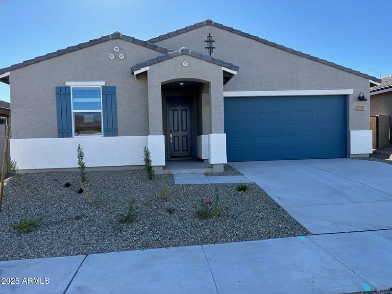 Listing details for 22595 Pontiac Dr, Surprise, AZ 85387 : The Arlo boasts a thoughtfully designed single-story layout with 4 spacious bedrooms, 2.5 modern bathrooms, and a 2-car garage. Its open floorplan seamlessly connects the living, dining, and kitchen areas—ideal for entertaining guests or enjoying everyday moments with family. Whether you're hosting a gathering or savoring a quiet evening in, The Arlo offers the perfect blend of style, space, and functionality. This home has white cabinets, quartz kitchen counters, tile flooring and taupe carpet in the bedrooms! INCLUDED - washer, dryer, window blinds, refrigerator and MORE! Relax in the serene and peaceful community or enjoy the White Tank Mountains and nearby hiking! Each home is built with innovative, energy-efficient features designed to help you ENJOY more SAVINGS!