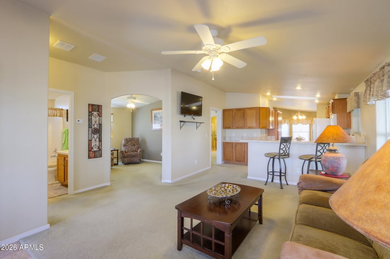 Listing details for 2263 Trekell Rd #17, Casa Grande, AZ 85122 : Discover this charming, one-owner residence featuring a thoughtful split-floor plan with 2 bedrooms, 2 bathrooms, & a versatile private office. The heart of the home is a light-filled open family room that flows seamlessly into a spacious island kitchen, complete with a breakfast nook and ample counter space. Enjoy a cozy den situated between the generous bedrooms for added privacy. This home is being offered fully furnished and includes an interior laundry room with washer and dryer. Outside, relax in the screened-in patio or the private, beautifully landscaped backyard enclosed by a secure block wall. Ready for immediate occupancy.