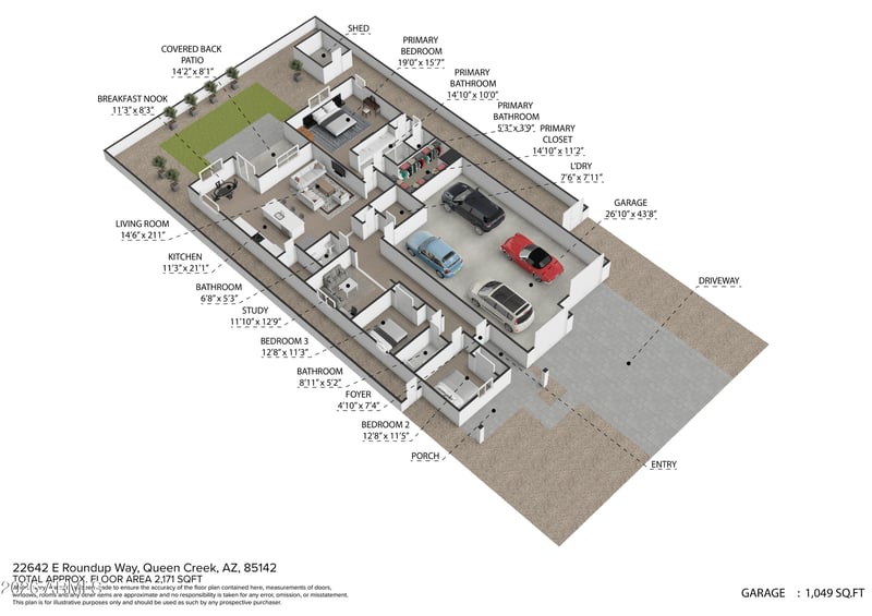 22642 Roundup Way, Queen Creek, AZ 85142 and is listed for sale at $585,000.00. This home was built in 2023, contains 2171 square feet of living space, and sits on a 0.17 acre lot. This residential home is priced at $269.46 per square foot.