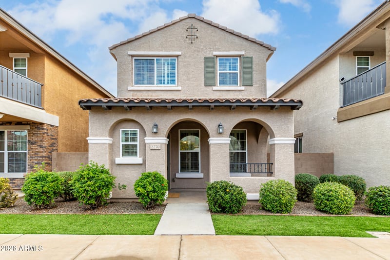 Listing details for 2270 Deerfield Ln, Gilbert, AZ 85295 : Look no more! This fantastic two-story home in Solana Town Center is the one! Providing 3 beds, 2 baths & powder room, & a rear 2-car garage. The cozy front porch is just the beginning! The interior boasts modern style w/ plantation shutters, a neutral palette, tons of natural light, tile flooring downstairs, & plush carpet upstairs. You'll love the desirable great room, perfect for everyday living & entertaining! The impressive kitchen boasts granite counters, recessed lighting, staggered white cabinetry, & a peninsula w/breakfast bar. Enjoy peace of mind w/ newer kitchen SS appliances, including recently installed refrigerator, plus a microwave & dishwasher replaced w/in the last two years. Head onto the upper level to find the bedrooms! The large primary bedroom has two closets - one is a walk-in closet, & an ensuite w/ dual sinks. If you want to relax or enjoy BBQ, the private paver-patio awaits you! Welcome home!