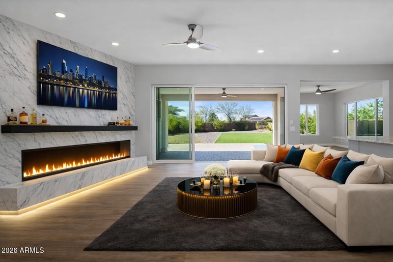 With its private courtyard fireplace entry, dual primary suites, chef's kitchen, dramatic sliding glass wall, premium corner lot, and incredible community amenities, this home offers the perfect balance of modern luxury, comfort, and the true Arizona lifestyle.