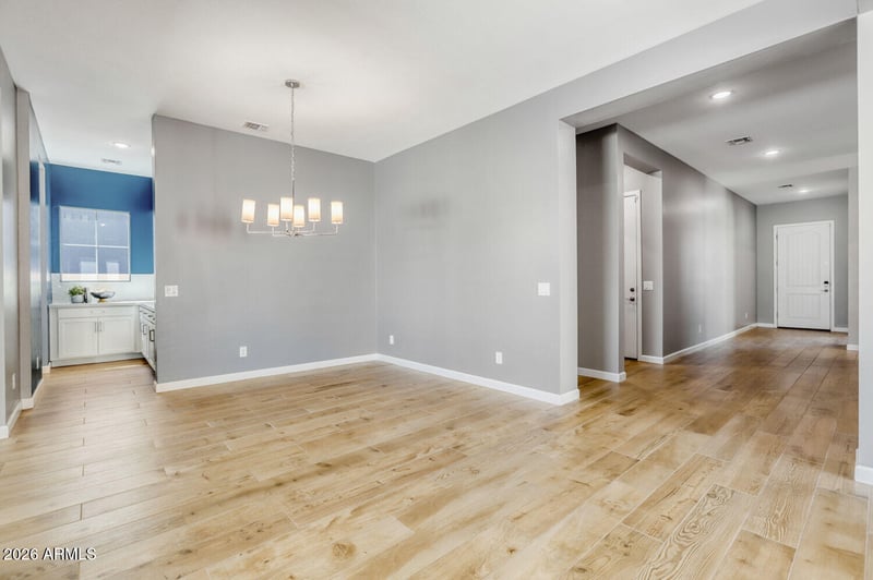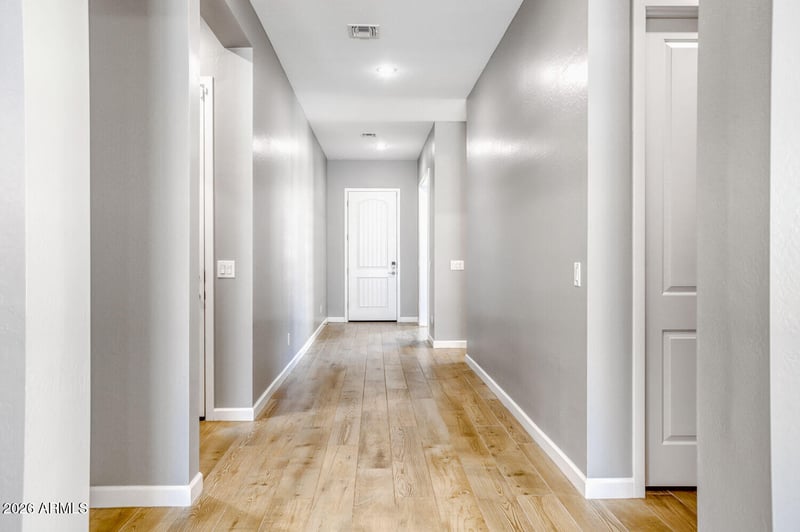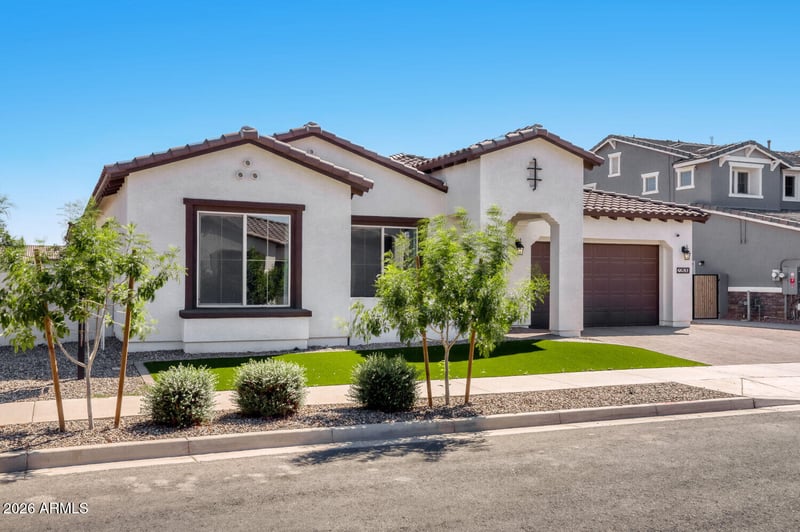 The front living room features elegant French doors, easily transforming the space into a private home office or study--ideal for today's work-from-home lifestyle. Step outside to your backyard oasis, highlighted by a brand-new 19' x 34' resort-style pool, framed by lush turf and ample space for for gatherings, relaxation, and year-round enjoyment. Additional highlights include a comprehensive ADT security system with four exterior cameras, door sensors, dual motion detectors, and keypad for peace of mind. The front yard showcases new turf, while the expanded three-car driveway offers rare extra parking and convenience. Located in a quiet, well-maintained community with resort-style amenities, this home is just minutes from top-rated schools, easy freeway access, and premier shopping and dining in Queen Creek.