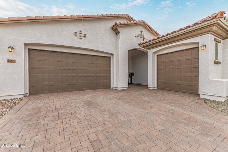 Listing details for 22880 San Tan Blvd, Queen Creek, AZ 85142 : LOCATION LOCATION LOCATION!! New Adventure awaits in this gorgeous and upgraded, single Level, 3BR + 3BATH + DEN + 3 CAR! New in 2024 - Upgraded Gehan Build! Why Wait? Explore all the festivities at ''Schnepf Farms'' or The Fabulous ''Queen Creek Olive Mill'' near by. ''A'' Rated Queen Creek Schools & Amenity Rich Community Features such as 2 Heated Pools, Parks, Catch/Release Pond, Splash Pad & Scenic Trails. Fully landscaped, grassy backyard, Smart home features, Granite counters, Gas stove, Luxury Tile (wood look) everywhere - no carpet. Bay Window in Master, Reverse Osmosis System and Whole Home Water Softener. 10ft Ceilings, 8ft Doors, Optimal North/South Facing Home. French Doors on Den could be 4th BR. Must See before it's Gone! Make this your New Home for the Family this NEW YEAR!