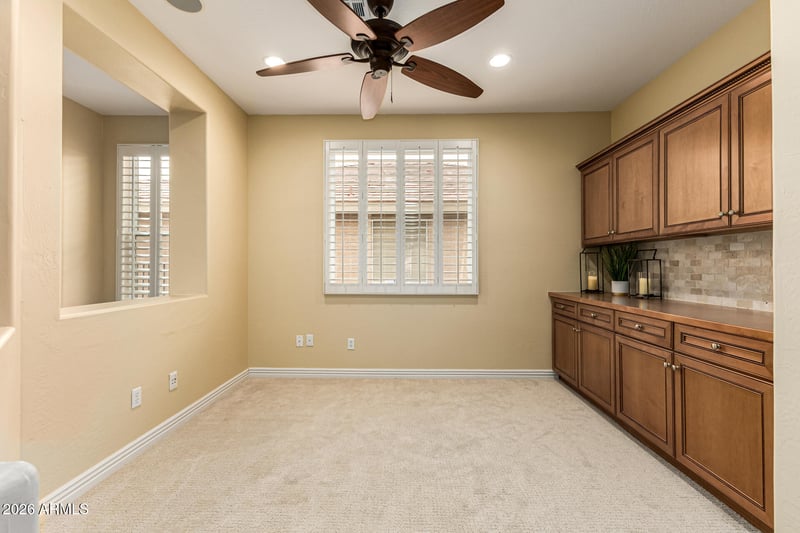 Listing details for 22900 Twilight Trl, Buckeye, AZ 85326 : NEW ROOF, HVAC, WATER HEATER, CARPET & INTERIOR PAINT and at the LOWEST price per sqft in the community - move-in ready! This beautifully maintained 2-bedroom, 2.5-bath home with a den/office offers golf course and mountain views in a vibrant active adult community. The spacious living and dining area opens through French Arcadia doors to an extended covered patio overlooking the 2nd fairway. A den/office area with built-ins for storage. The eat-in kitchen features staggered cabinetry with glass inserts, granite countertops, and a beautiful travertine backsplash. The primary suite includes a sitting area with patio & yard access. A 2-car garage with built-in storage, workbench, and soft water system. This home has it all! Enjoy resort-style amenities including a clubhouse, pool and spa, golf, fitness center, and more. Everything you need for a relaxed and active retirement lifestyle, don't miss this outstanding value!