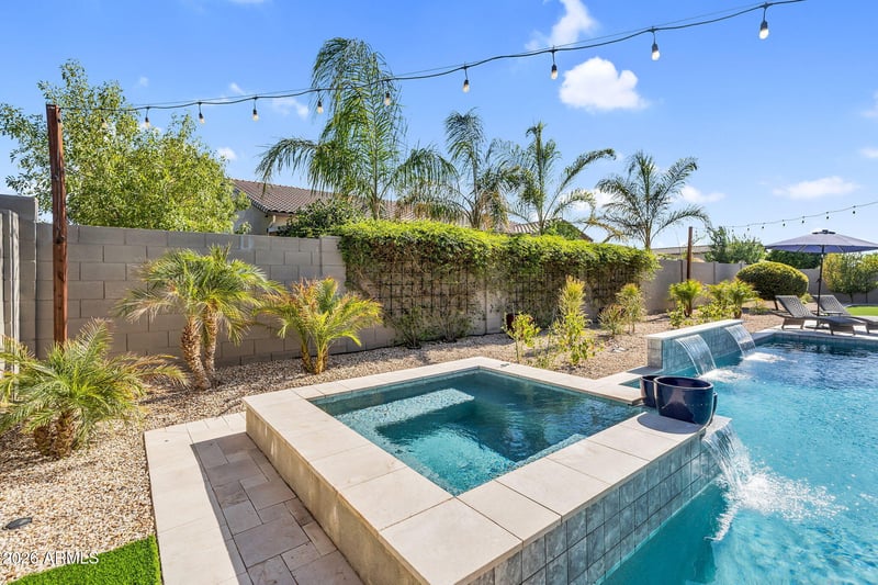 Listing details for 22933 Camacho Rd, Queen Creek, AZ 85142 : Experience unparalleled luxury living in this exquisite executive home nestled in the prestigious gated community of Spur Cross in Queen Creek, AZ. This meticulously crafted luxury residence blends sophisticated elegance with exceptional entertaining spaces, ideal for discerning buyers seeking high-end homes for sale in Queen Creek. Step inside to a bright, airy open-concept design featuring premium finishes and abundant natural light. The thoughtful split floor plan includes two secondary bedrooms and a full bath at the front, plus a versatile flex room currently used as a fourth bedroom—perfect for adaptable living, guests, or a hobby space. A dedicated home office with custom double glass doors opens to a private outdoor courtyard and includes stylish built-in cabinetry, file drawers and lighting for optimal productivity. The expansive great room impresses with a dramatic 16-foot sliding glass door that seamlessly connects indoors to an outdoor entertainer's paradise. The gourmet kitchen is a chef's dream, complete with high-end designer finishes, top-tier stainless steel appliances, a large center island, and an oversized walk-in pantry for ultimate convenience and storage. Retreat to the lavish primary suite, boasting generous proportions, breathtaking views, a spa-like ensuite bath with separate tub and shower, dual vanities, and a custom-built bookcase with drawers for refined elegance. Sprawled across a rare 15,000+ sq ft oversized lot, the resort-style backyard oasis features a sparkling heated pool, relaxing hot tub, low-maintenance turf, lush landscaping, custom shades, and an outdoor misting system for year-round Arizona comfort and enjoyment. Adventure enthusiasts will love the impressive 49-foot detached RV garage with air conditioningperfect for storing boats, toys, vehicles, or hobby gear in this Queen Creek RV-friendly home. Additional thoughtful upgrades include a built-in bench by the back door, custom electric fireplace with mantel, and premium details throughout for a cozy yet upscale feel. Located in the heart of fast-growing Queen Creek, enjoy convenient access to top-rated schools, premier shopping, dining, and recreation. This move-in ready luxury home masterfully combines functionality, privacy, and outdoor Arizona living in one of the area's most sought-after gated communities.