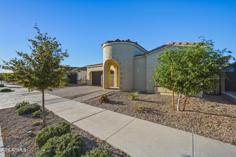 Listing details for 22944 Arroyo Verde Dr, Queen Creek, AZ 85142 : Excellent location in the highly desirable Meridian community of Queen Creek with fantastic amenities and low HOA! Enjoy access to top-rated schools, a community pool, splash pad, recreation center, sport courts, and expansive parks. This home sits just steps from a huge community park and the neighborhood pool. Hard-to-find single-level floor plan featuring 5 bedrooms and 3 full bathrooms in this price range. Extremely clean and move-in ready with fresh interior paint and new carpet throughout the bedrooms. Beautiful kitchen with white shaker cabinets, quartz countertops, oversized island with bar seating, gas cooktop with wall oven, and stainless steel refrigerator. Spacious open great room layout perfect for entertaining. Split master suite located at the rear of the home featuring a stunning bathroom with freestanding tub, walk-in shower, dual sinks, and private toilet room. One additional bedroom is privately located near its own bathroom, ideal for guests. Three additional bedrooms are situated at the front of the home and share a full bathroom. Tile flooring runs throughout the main living areas with new high-grade carpet in the bedrooms. Low-maintenance backyard includes quality artificial turf and paver patio. The garage features professional epoxy flooring and overhead storage racks. This one checks all the boxes!
