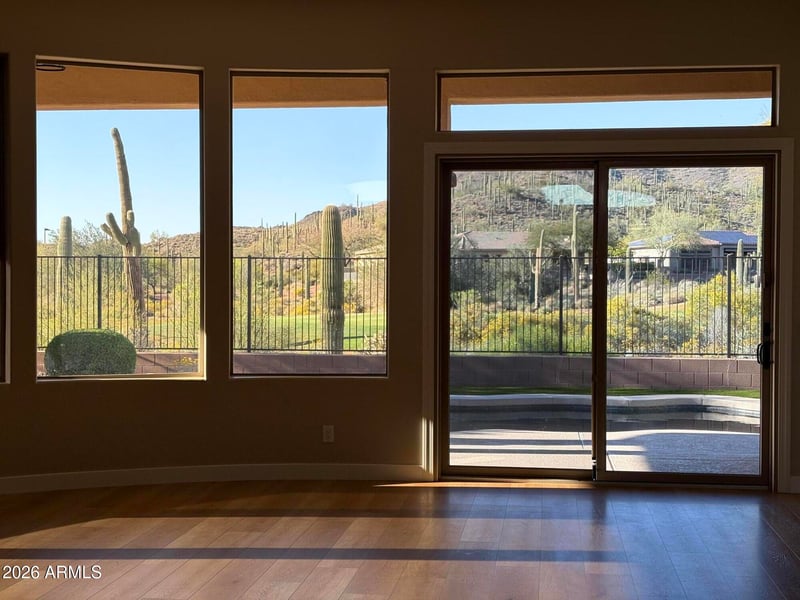 Listing details for 2302 Hazelhurst Dr, Anthem, AZ 85086 : Some homes have golf course views... this home has a perfectly framed view of Daisy Mountain on a premium lot right along the 16th hole of the Persimmon Course. Look right out into the Arizona landscape to see the gorgeous saguaros scattered on what local golf members refer to as ''Cactus Hill''. Relax in your backyard retreat featuring a heated pool, spa, putting green, and a large turf area for pets and play. Thoughtful design choices throughout the home include new flooring, an expanded kitchen island, and French doors to the office or 4th bedroom for privacy. Rest easy knowing the big-ticket items are completed such as the full roof finished in 2024 and two Trane AC units installed in 2020. This turnkey home allows you to start enjoying your resort-style Anthem lifestyle immediately!