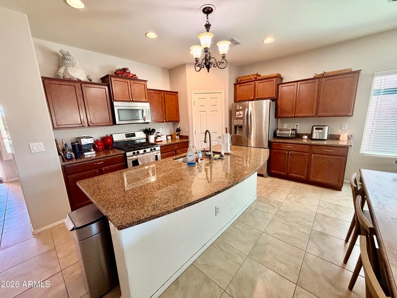 Listing details for 2310 Palo Verde Dr, Florence, AZ 85132 : Welcome to this charming single-story home perfectly situated on a premium lot with no neighbors behind--offering privacy and peaceful views. Featuring a highly desirable open floor plan, this home includes 4 bedrooms plus a versatile den that can easily serve as a home office, playroom, or additional living space. Enjoy stylish and low-maintenance tile and wood laminate flooring throughout, complementing the spacious layout. The open kitchen flows seamlessly into the family room, creating the perfect space for everyday living and entertaining. Step outside to a private backyard retreat with a covered patio--ideal for relaxing or hosting--while enjoying the added bonus of no rear neighbors. Located in the award-winning community of Anthem at Merrill Ranch, residents enjoy access to... a Troon-managed golf course, on-site restaurant, beautiful parks, a fishing lake, and a state-of-the-art recreation center featuring indoor basketball, a fitness facility, clubs and activities, a rock climbing wall, plus an outdoor pool and water park. Experience resort-style living at its finest in this thriving and growing community--this is a home you don't want to miss!