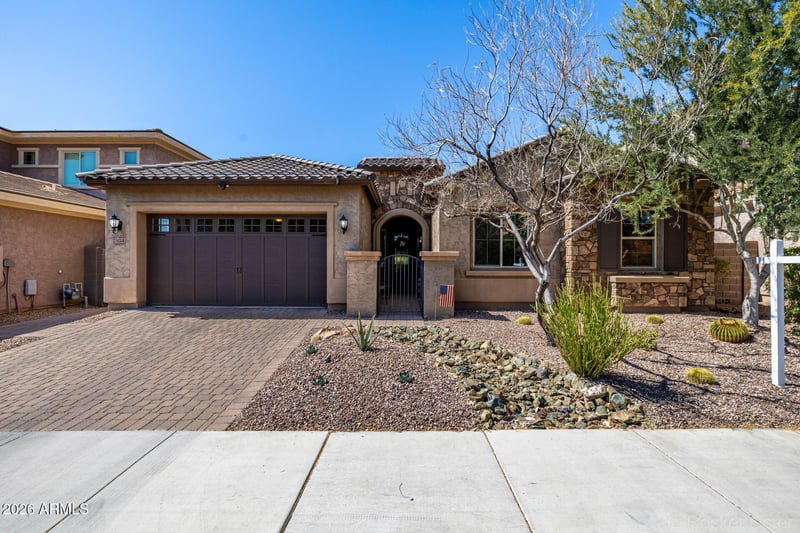 Listing details for 23114 45th Pl, Phoenix, AZ 85050 : Gorgeous new listing in the exclusive gated community of Sanctuary at Desert Ridge! Upgrades galore! See Docs Tab for all upgrades. Built in 2016. Single level model-like home offers open split floor plan w/4 spacious bedrooms, den with french doors & 2.5 bathrooms. Luxurious chef's dream kitchen has an oversized island w/granite countertops, gorgeous marble backsplash, cherry wood cabinets w/glass display, crown molding & professional Monogram appliances including a new microwave/convection oven. Great room features a newly upgraded brick accent wall & wood floating shelves. Exquisite hardwood flooring runs throughout w/modern tiles in the higher traffic areas. The large master suite has an incredible ensuite with a beautifully updated master shower and added linen closet. (Continued) Tankless water heater. Epoxy Garage Floors. Reverse Osmosis and Whole Home Soft Water System. Smart Energy Efficient Home. The incredible backyard has upgraded pavers, built-in grill, fire-pit, electronic patio drop shade, artificial turf and tasteful landscaping. Relax under the beautifully constructed pergola and gaze at the Arizona sunsets. The view fence overlooks a desert preserve with no homes directly behind you. Keep your monthly expenses low in the AZ summer with fully owned solar panels. This impeccable community has multiple green belts, playgrounds, heated community pool, club house, fitness center and more! This home is a must see!!!