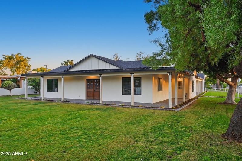 Listing details for 2315 42nd St, Phoenix, AZ 85008 : Experience the charm and character of Southern Arcadia in this newly completed 5+ bedroom, 4 bath residence offering over 3,600 sq. ft. of beautifully refined living space. Perfectly positioned on a large corner lot, this home captures timeless Southern appeal with its wraparound porch extending from the north side all the way to the garage on the south, gracing both the front and back of the home. Inside, vaulted ceilings highlight the main living areas and primary suite, while the split floor plan with a teen room or second living space creates the perfect setup for families. The chef's kitchen features a full butler's pantry and custom cabinetry, paired with designer selected finishes that reflect today's most timeless trends. Many rooms offer direct access to the covered porch, seamlessly blending indoor and outdoor living. The primary suite includes a spa-inspired bath and an impressive walk in closet. Outside, new landscaping and hardscaping surround the existing pool, complemented by two distinct yard areas including a fenced front yard ideal for kids or pets. The Southern transitional farmhouse design is both iconic and current, completed by a massive three car garage that has enough space for cars and toys. Truly one of Arcadia's most unique homes under $2 million