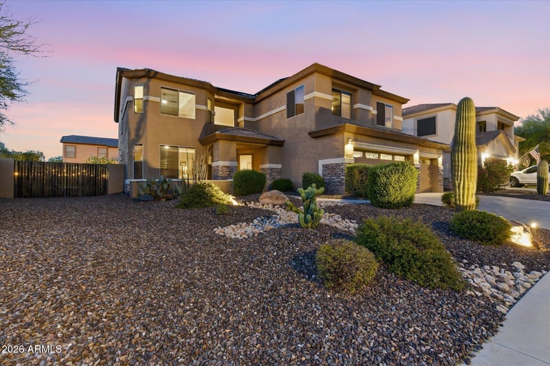 Listing details for 2316 Eagle Feather Rd, Phoenix, AZ 85085 : Unbeatable value in North Phoenix! Located in the highly desirable Carefree Crossing community, this meticulously maintained home features a private pool, three-car garage, oversized corner lot with an RV gate, and a brand-new roof (2026). The functional floor plan offers multiple flex spaces, large bedrooms, and ample storage. The open kitchen is equipped with granite countertops, cherry cabinetry, a walk-in pantry, an induction cooktop (plus gas stub), and stainless appliances. Interior highlights include a clean, neutral palette, hardwood and tile flooring, and updated bathrooms. Step outside to a beautifully landscaped Arizona oasis, showcasing a fully-fenced PebbleTec pool, a large side yard, grassy turf, an extended covered patio, and a separate gated dog area. Prime location near shopping & dining, top-rated schools, over 36 miles of trails within the Sonoran Preserve, I-17 and Loop 303 access, and TSMC Arizona. NOTABLE UPDATES: Roof (2026), water heater (2025), washing machine (2025), refrigerator (2025), exterior paint (2024), downstairs carpet (2024), induction cooktop (2023), pool filter (2022), upstairs guest bathroom (2022), hardwood floors (2021), dishwasher (2021), upstairs primary bathroom (2019), interior paint (2018) SOLAR BENEFIT: Fixed lease payment of $43.06/mo plus tax through Tesla. 5-year lease option renewed through December 2030. APS bills averaged $115.10/mo in 2025 (low of $33.19 in March and high of $269.83 in September). Total average payment in 2025 of $158.16/mo (APS + lease). Buyer to independently verify all utility costs, solar lease terms, and related information. APS bills vary based on usage.