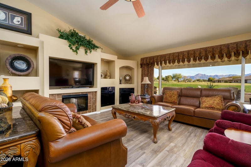 Listing details for 2325 Olivewood --, Mesa, AZ 85209 : One of the nicest, move in ready golf houses ever in SSV on a golf view lot of same description! Model perfect coordinated presentation.! Furniture available, Checks every box. Impeccable.The 2100 plan with a den is an open, inviting to entertain plan. The full length fairway view to the mountains in the breakfast nook invites you to have morning coffee, casual lunch, or move to formal dining table in great room. SS Appliances. Lengthened garage. Large master with big shower, no 2100 plan garden tub! Hurry