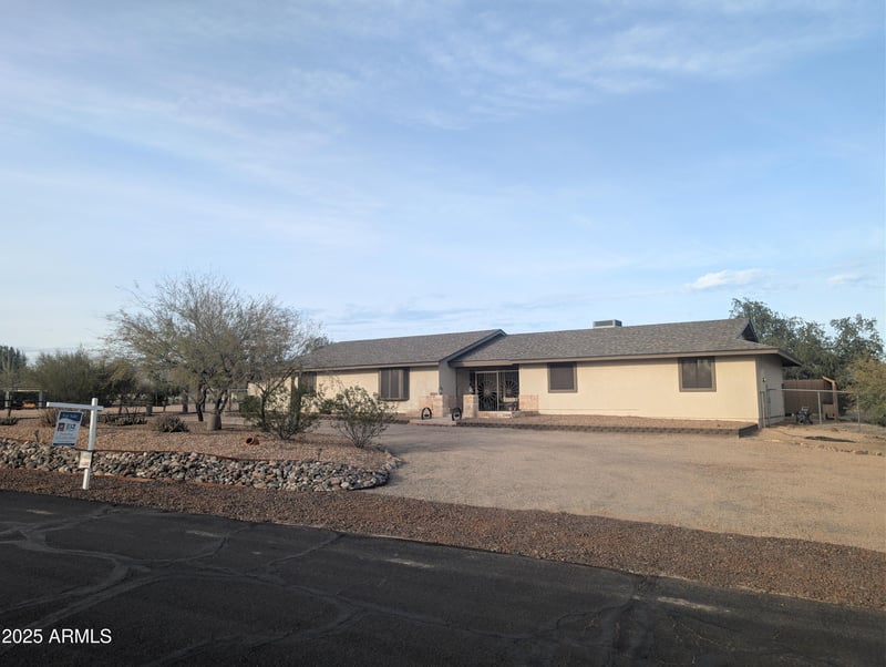 Listing details for 23332 Watkins St, Buckeye, AZ 85326 : *Seller is offering $2,500 towards closing costs with a full offer* Enjoy space and comfort on a full acre in Buckeye with this 3 bed, 2.5 bath, 2,600 sq ft ranch-style home—no HOA! Inside, stone floors flow through open living areas and an updated kitchen with custom cabinets, a large island, and a walk-in pantry. A game room with a built-in bar adds extra fun and flexibility. Outside, enjoy a built-in gas grill, detached carport, and shed with its own basement. Plus, a new roof, new water heater, fresh paint and recently added driveway gravel. Close to Sundance Park and just a mile from the freeway!