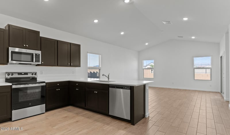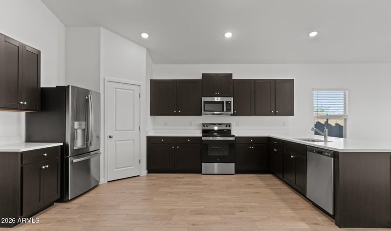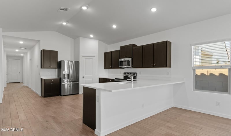 Listing details for 23442 Albeniz Pl, Buckeye, AZ 85326 : ~Special CASH Pricing Available $349,990~ Welcome home to Monroe Ranch, where modern living meets everyday convenience in a vibrant community close to outdoor recreation, shopping, and entertainment. The impressive Orinoco plan offers the perfect blend of comfort and style, featuring thoughtfully crafted Elements-inspired finishes throughout. The gourmet kitchen is a true highlight, showcasing Sarsaparilla-stained cabinetry, Valle Nevado granite countertops, and GE stainless-steel appliances including a refrigerator. Enjoy seamless flow between the open great room and dining area, ideal for relaxing or entertaining. The serene primary suite offers a walk-in shower and dual sinks for added luxury. With faux wood blinds, washer, and dryer already included, this home is truly Move-in Ready.
