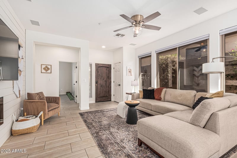 Listing details for 2359 Muirfield Dr, Anthem, AZ 85086 : Welcome to your sun-filled single-story retreat in the heart of Country Club living! This beautifully maintained home offers 3 bed/3 baths, which includes the 1 bed/1 bath casita that is ideal for guests, extended family, or a quiet home office. The updated kitchen with copper sink, stainless appliances, induction range, and roomy island opens to the living and dining areas, accented by stylish flooring and a cozy shiplap fireplace. Outside, enjoy a private south-facing backyard with in-ground spa (w/new heater) and gorgeous mountain views perfect for morning coffee or evening unwinding. Dual-pane Anderson windows, newer HVAC ('22), and Club provides access to golf, restaurants, spa, resort-style pools, gym, pickleball, etc. This home is perfect for right-sizing or relaxing second home