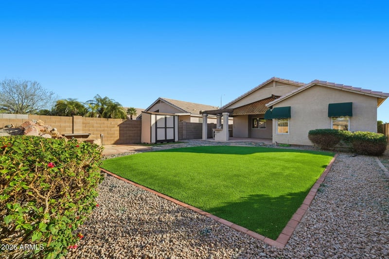 Listing details for 238 Hudson Pl, Chandler, AZ 85225 : Immaculate, extensively updated 3-bedroom, 2-bath home located in the highly desirable Tradition community with no HOA! This beautifully maintained residence features an open, efficient floor plan and a warm, inviting atmosphere throughout. Wood-look tile flooring runs through the main living areas and bedrooms, complemented by fresh interior paint in soft, neutral tones. The stunning kitchen showcases vaulted ceilings and exposed wood beams that extend into the living rooms, adding character and charm. Kitchen highlights include a gas range, stainless-steel appliances, white tile backsplash, updated cabinetry, and new light and plumbing fixtures. The kitchen flows seamlessly into the dining and living spaces, making it ideal for both everyday living and entertaining. Step outside to a private backyard retreat featuring an oversized covered patio, lush landscaping, new low-maintenance artificial turf, a built-in BBQ grill with sink, and a tranquil rock water fountain feature. This outdoor space is perfect for relaxing, hosting guests, or enjoying Arizona's beautiful weather year-round. Move-in ready with thoughtful updates throughout, inside and out.