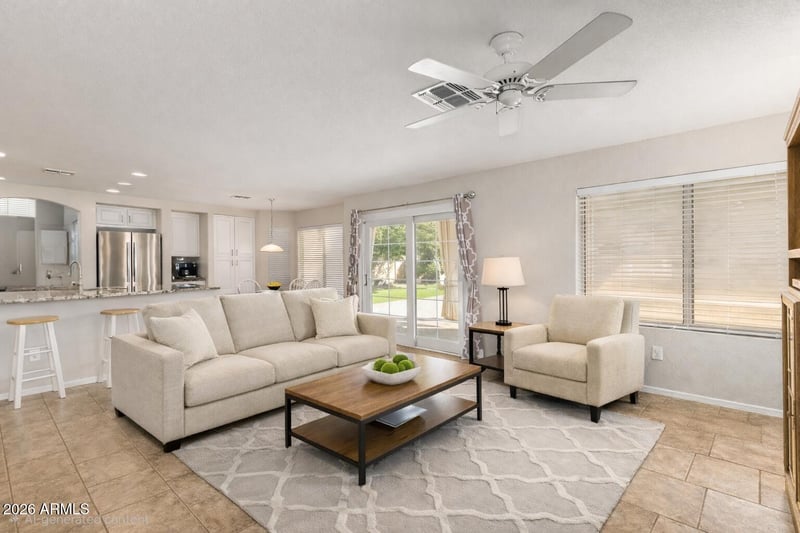 Listing details for 2381 Augusta Ave, Chandler, AZ 85249 : Immaculate and extensively updated, this move-in-ready home delivers the space, comfort, and reliability today's families deserve. The updates that matter most have already been completed: HVAC, windows, water heater, water softener, pool equipment, and fully updated bathrooms and kitchen. The result is a home that lives far newer than its years, offering true peace of mind. With four bedrooms, three baths, a sparkling pebble tec pool, and a beautifully designed backyard with turf and pavers, this immaculate property is ideal for a growing family. Sunlight fills the formal living, dining, and entry space with beautiful eye level and clerestory windows. A dramatic staircase centered in the home leads to the primary suite and two additional bedrooms that share a spacious Jack-N-Jill bath while the loft area offers built-in cabinetry for valuable extra storage. The primary suite stands out with vaulted ceilings, gorgeous real wood floors, a custom-made barn door leading to the bath that offers two sinks, separate tub and newer tiled shower, a private commode room w/a new toilet in 2024 and separate HIS/HERS walk-in closets. The recently remodeled kitchen features painted white shaker-style cabinetry, granite countertops, a custom coordinated backsplash, breakfast bar and island, updated appliances, pantry space w/pull out shelving, and a window-draped bayed eat-in area that adds charm, functionality and natural lighting. The main level also includes one bedroom and full bath, perfect for guests, teens, a playroom, or a home office. The bath was tastefully remodeled in 2024 with a new tiled shower, granite countertop, new toilet, sink, faucet, and hardware.