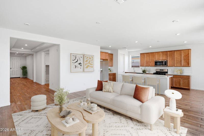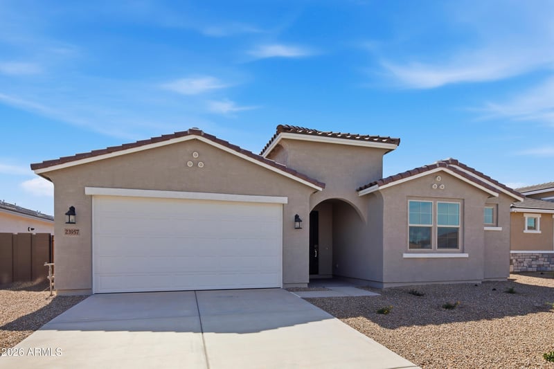 Listing details for 23957 Carver Dr, Buckeye, AZ 85326 : This popular single story Imperial plan showcases 4 spacious bedrooms, 2.5 bathrooms, and a 3 car tandem garage, delivering the perfect blend of comfort and versatility. Step inside and be charmed by the high ceilings, 8' doors throughout, wood tile flooring that leads you into an open, modern kitchen featuring 42'' oak wood cabinetry, quartz countertops, a stylish tile backsplash, and a dedicated dining room ideal for gatherings. The kitchen comes fully equipped with stainless steel appliances, including a gas range and built in microwave. The primary suite offers a relaxing escape with its large walk-in shower. The backyard landscaping has been included. The home is extremely energy efficient and has the added benefit of INCLUDED OWNED SOLAR. Don't miss out!