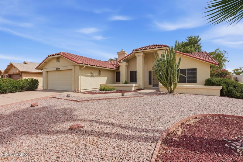 Listing details for 2399 Leisure World --, Mesa, AZ 85206 : Discover the potential & comfort within this charming 3 bed, 2 bath home in the highly sought-after 55+ community of Leisure World. Thoughtfully updated with new flooring, new baseboards, and new blinds, this home offers a fresh, move-in ready feel. Vaulted ceilings and abundant natural light create a bright, open living space, anchored by a stunning slump block fireplace that adds warmth and character. The popular split-bedroom New Coronado floor plan provides ideal privacy, with the primary suite separated from the secondary bedrooms--perfect for guests or a home office. Situated on a desirable corner lot, the home features an oversized covered patio, perfect for entertaining or relaxing while enjoying Arizona's beautiful weather. Additional highlights include an inside laundry room and a functional layout designed for everyday living. Enjoy resort-style amenities including 36 holes of private golf, pickleball, tennis, pools, a state-of-the-art fitness center, theater, arts & crafts, billiards, and more--all within one of Mesa's premier active adult communities.