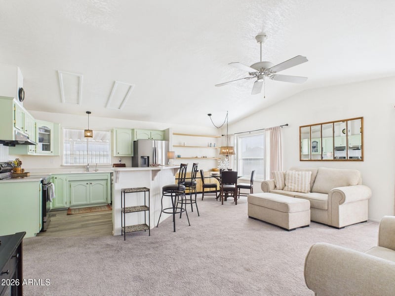 Listing details for 2400 Baseline Ave #112, Apache Junction, AZ 85119 : This gently used and nicely updated home is waiting for you. Lovely open concept home has new appliances. new chair height toilets, redone roof, a new RO unit allows for the perfect cup of coffee. The shed has new electicity in it. The back yard has been professionally designed and is very private, a dream spot to sit and enjoy the perfect Arizona weather. When the weather is not as perfect, spend your time in the spacious screen room. FULLY FURNISHED with high end and almost new furniture you'll just love, this is not inexpensive furniture. All you'll need is your toothbrush! This is one you really want to see. Bring all offers!