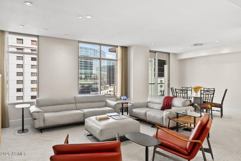 Listing details for 2402 Esplanade Ln #704, Phoenix, AZ 85016 : Stunning residence #704 offers well-designed and thoughtful updates to the original floor plan: two primary bedroom closets, updated bathrooms & kitchen, office/den remodeled into a 3rd bedroom with designer frosted glass double doors. The great room offers a gas fireplace and a formal dining area with a wine refrigerator and shelving. Enjoy the award-winning services & amenities befitting the ultimate high-rise address, Esplanade Place, in the heart of the Biltmore/Esplanade area of Phoenix offering dine-in theater, find restaurants, shopping and entertainment venues! With valet parking, rooftop pool, full fitness enter, 24hr lobby desk and other desired services, your easy care high-rise living lifestyle awaits and welcomes you!