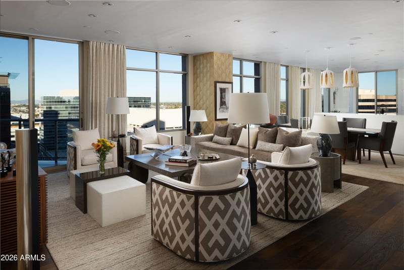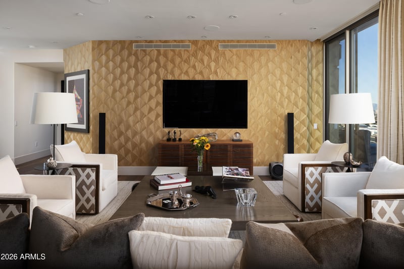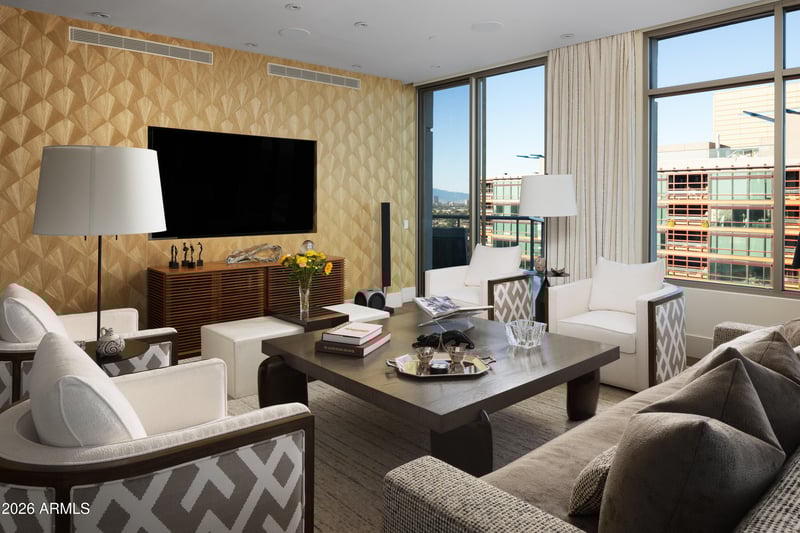 Listing details for 2402 Esplanade Ln #PH1, Phoenix, AZ 85016 : The crown jewel of the ultra luxurious Esplanade Place, Penthouse 1 is the only penthouse unit to capture views of Downtown, Camelback, and Piestewa Peak. Remodeled in 2021, this designer touched masterpiece brings an eloquent, timeless styling of contemporary throughout its spacious 3,350 sq ft floor plan. The chef's kitchen features a gas Wolf cooktop, island, and Sub Zero fridge. Esplanade Place features 24/7 concierge services, valet, workout room, locker rooms with steam saunas, rooftop pool, and more, providing its residents with peak convenience and security. Walking distance to Biltmore Fashion Park, this penthouse provides easy access to some of Phoenix's best shopping and dining. Just 8 miles from Sky Arbor, living at Esplanade creates easy travelling for its residents.