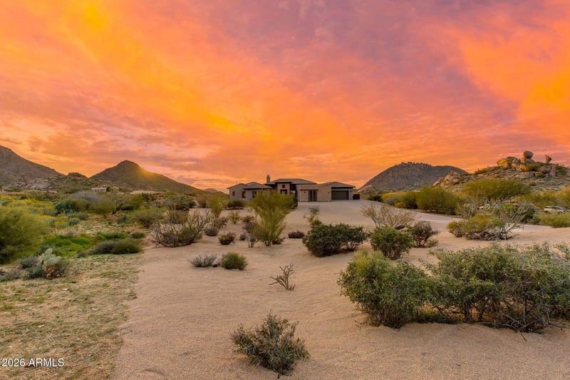 Listing details for 24020 123rd Pl, Scottsdale, AZ 85255 : Experience the pinnacle of resort-style living in North Scottsdale's prestigious, guard-gated Sereno Canyon community. Positioned high above neighboring residences, this exceptional 3.7-acre premier homesite offers rare privacy and sweeping, unobstructed views through the natural valley between the McDowell Mountains and Troon Mountain—capturing breathtaking panoramas and unforgettable sunsets. A striking glass-and-iron front door opens to a light-filled great room with full-wall sliding glass doors that seamlessly connect indoor and outdoor living. Ideal for both everyday living and entertaining, the space flows into an oversized chef's kitchen featuring abundant custom cabinetry, expansive counter space, a 48'' gas range with double ovens, and a built-in stainless steel refrigerator. A private office sits just off the great room, while a formal dining room is enhanced by a temperature-controlled wine room that stores 300+ bottles. The desirable split floor plan offers exceptional privacy featuring a total of 6 bedrooms, all ensuite (including the casita) and 6 bathrooms and two half bathrooms. The primary bedroom is split with a luxurious primary retreat featuring dual vanities, soaking tub, expansive tiled shower, dedicated makeup area, and a generous walk-in closet with its own washer and dryer. The opposite wing includes a versatile flex space ( it's own stackable laundry closet) and additional ensuite bedrooms, all with walk-in closets, including a fourth ensuite ideal as a secondary primary. A private guest casita with kitchenette, living area, bedroom, bath, and walk-in closet with washer and dryer completes this remarkable estate. Completing this exceptional offering is immediate access to the Tom's Thumb Trailhead just beyond the backyard, along with walkable proximity to the exclusive Sereno Canyon Mountain House Lodge. Residents enjoy refined dining at Alterra, resort-style pool and spa amenities, and a fully equipped fitness center, all framed by the dramatic mountain landscape. Beyond the gates, North Scottsdale presents an array of upscale shopping, acclaimed restaurants, championship golf, and endless outdoor recreation. This is a rare opportunity to experience a sophisticated desert lifestyle where privacy, luxury, and natural beauty converge.