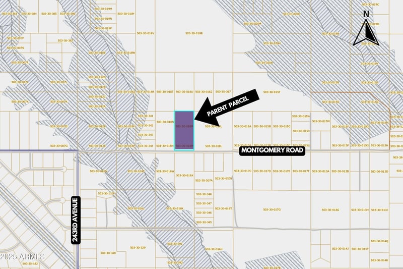 Listing details for 24046 Montgomery Rd #-, Wittmann, AZ 85361 : Full 5 acres w/ No Flood, No Fly Zone: Just pure FREEDOM! Come build one home (manufactured okay!) Or up to 5 homes! We already have the survey for the split. The gorgeous Mountain View's in all directions are yours. The freedom to have livestock or horses is awesome! Build your own home or we can introduce you to a builder. Trader Joe's and Fry's food stores just 17 minutes away. Welcome to Wittmann! Gas station, Food Trucks, Subway, Feed Store and post office all available in Wittmann. Growth centers for jobs within easy commuting distance. We have lenders or the owner may carry. NO FLOOD Zone. NO APZ. Fully buildable! Just add a well and septic. Electric Nearby