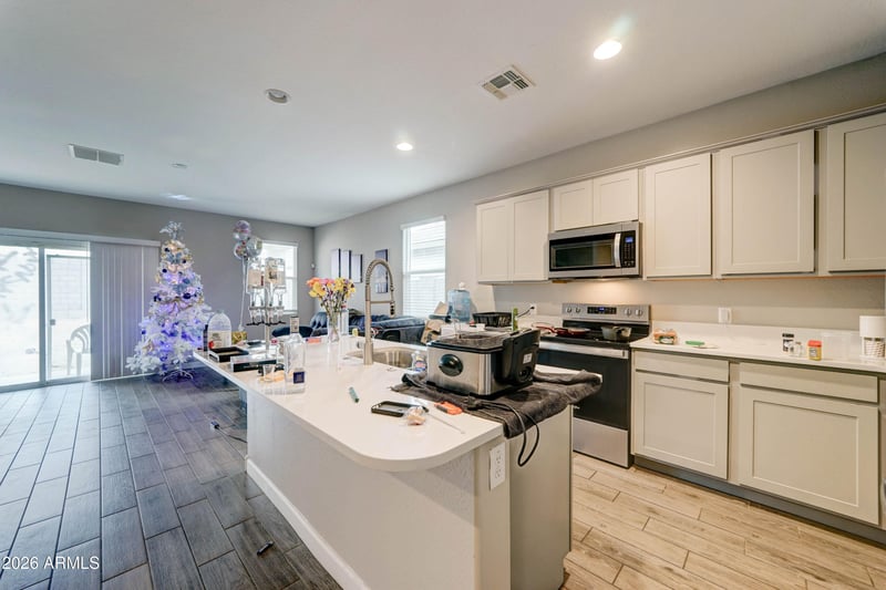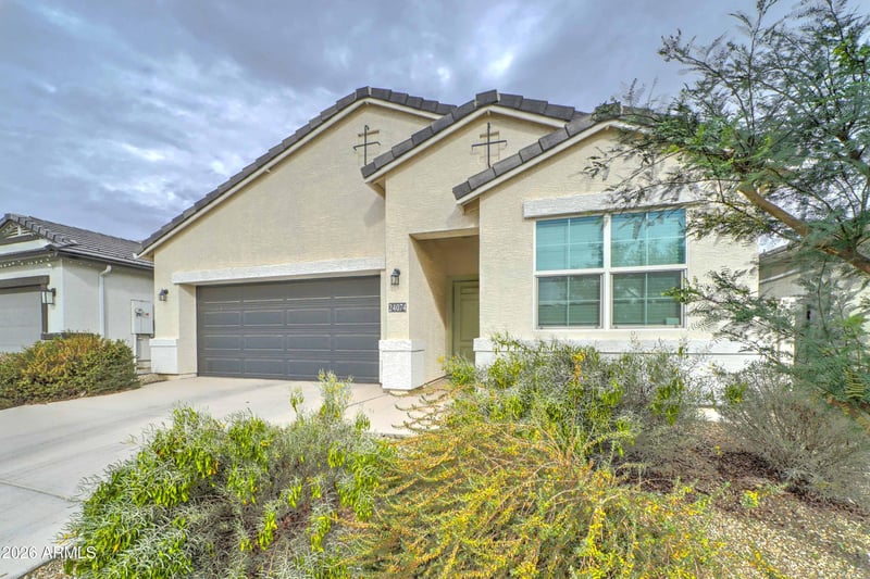 Listing details for 24074 Zak Rd, Buckeye, AZ 85326 : This beautifully maintained, hardly-lived-in home feels like new and showcases the popular Dove floor plan with a hard-to-find 3-car tandem garage. Inside, you'll enjoy a modern kitchen with quartz counters, gray shaker cabinets, and upgraded stainless steel appliances. Plank tile runs through the main living spaces with upgraded carpet in the bedrooms. Window blinds are already installed throughout, making this home truly move-in ready. A wonderful opportunity in Desert Moon Estates.