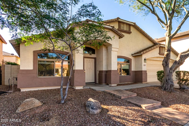 Listing details for 2409 Bent Tree Dr, Phoenix, AZ 85085 : Welcome to nestled in a quiet cul-de-sac next to a lush green park, this lovely single-story home has 4 bedrooms, 2 bathrooms & a 2-car garage with attached storage. Inside, you'll find bright living areas with wood-look flooring, vaulted ceilings that add a feeling of openness with well-appointed kitchen, featuring abundant cabinetry, spacious counters, a walk-in pantry & an island. The tranquil owner's suite offers a bathroom with double sinks and a separate shower & tub, a walk-in closet, and easy access to the patio. The backyard is complete with a covered patio, flagstone flooring & a serene landscape with raised planters. New roof in 2025, AC in 2022 and water heater in 2025.
