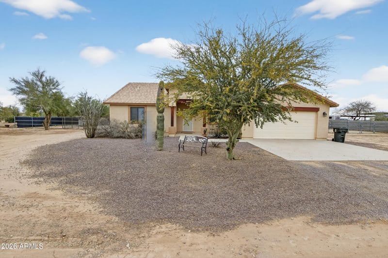Listing details for 24137 Blue Sky Dr, Wittmann, AZ 85361 : This exceptional horse property is one you won't want to miss! Set on 1.2 acres, this beautiful ranch-style home offers stunning mountain views from both the front and backyard—perfect for enjoying those breathtaking sunsets.