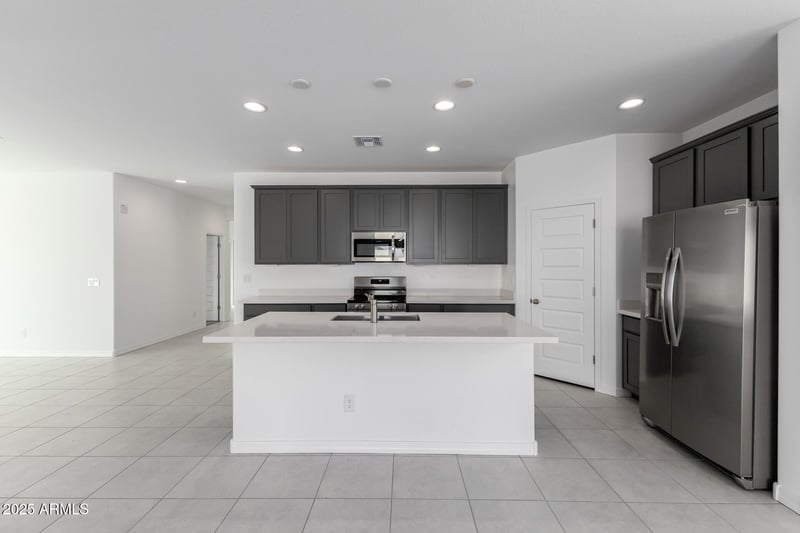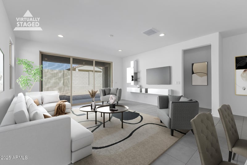 Listing details for 24166 Hilton Ave, Buckeye, AZ 85326 : The only home left with our stunning stone exterior elevation! This beautiful 3-bedroom, 2-bath home with a versatile flex space offers modern living and great curb appeal. Enjoy an open dining area that flows into the living/great room, complemented by a stylish multislide back door for seamless indoor-outdoor living. The kitchen features 42'' grey cabinets, white quartz countertops, a single-bowl sink with trash pull-out. Upgraded baths include square sinks and sleek fixtures. Tile and carpet throughout, stone-finish exterior elevation, and thoughtfully upgraded details make this home a standout.