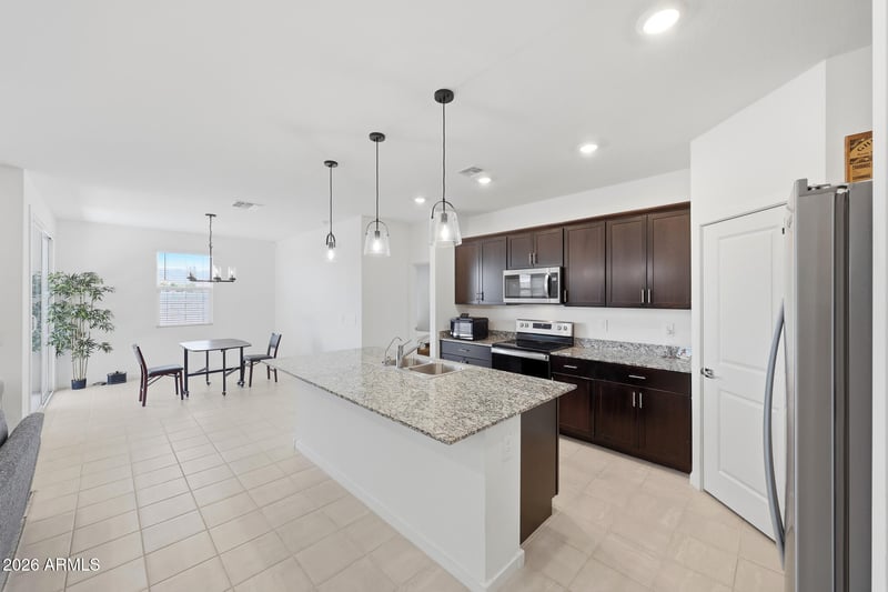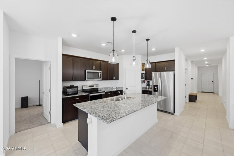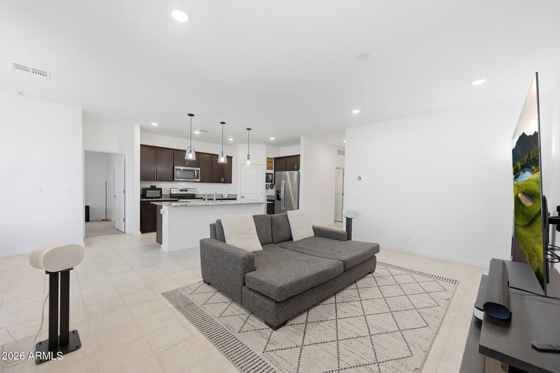 Listing details for 24172 Hopi St, Buckeye, AZ 85326 : Welcome to this beautifully designed 4-bedroom, 2-bath home offering 1,832 sq ft in one of Buckeye's fastest-growing areas. The open-concept layout features a spacious great room paired with the kitchen and dining area, ideal for everyday living and entertaining. Thoughtfully designed split layout offers a private primary retreat, complemented by three additional bedrooms that could be ideal for guests, a home office, or additional living space.
